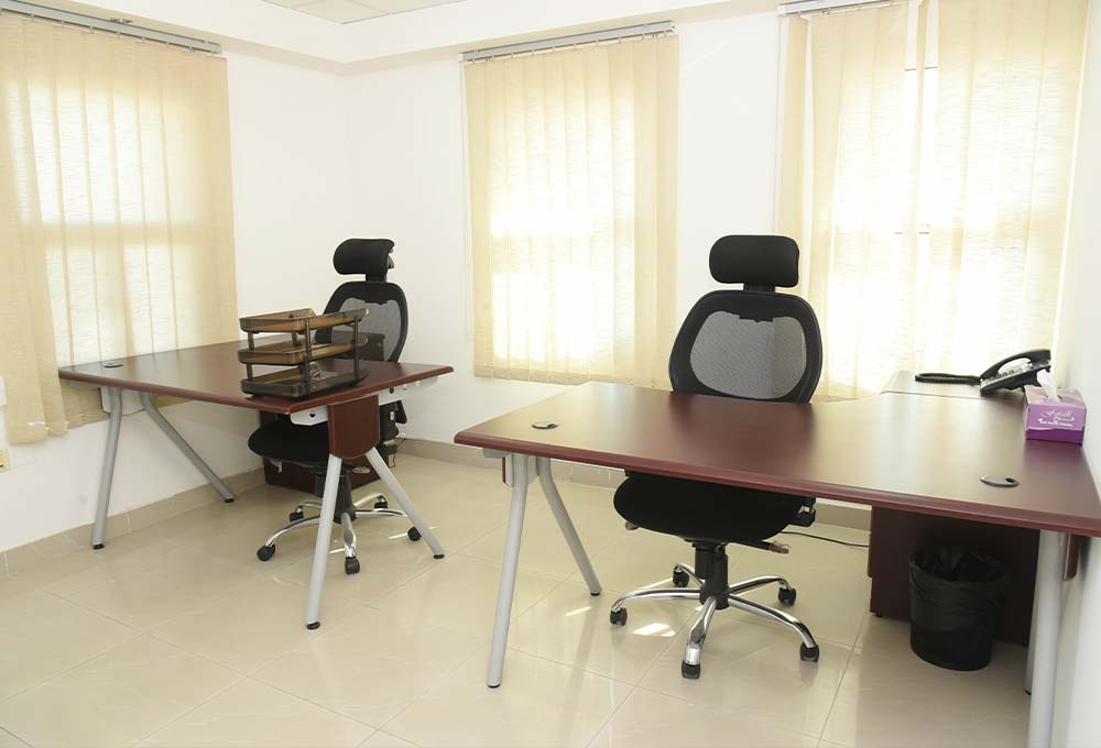 تنقسم المساحة المكتبية إلى 77 مكتب مؤثث بالمكاتب والكراسي ومجهزة بخطوط الهاتف وشبكة الإنترنت. كما يقدم المركز العون والمساعدة للمستأجرين في إدارة شئون أعمالهم من خلال أعمال السكرتارية الأساسية.